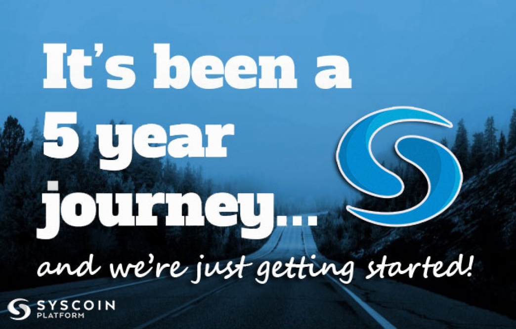 The past five years have been a great adventure for all of the team members and our brilliant community. Syscoin has been able to stay on top of its game in this fast-moving space by constantly adapting, evolving and learning. We have grown in so many ways and we just keep on growing - there are community members from a vast range of backgrounds and industries spending their time to help Syscoin Platform grow and thrive, and to all of you, we say THANK YOU!